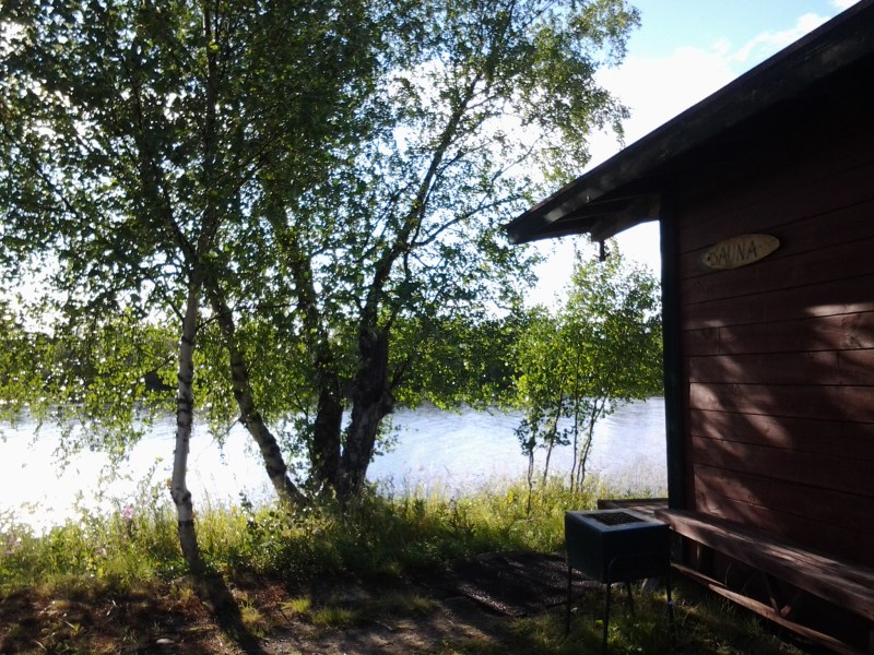 You can actually sleep in the parking lot of the visitor’s centre, but there are no facilities like showers or kitchens. After one night of being rocked and rolled in the van by the wind, we decided to head to the much calmer Finland. The first thing we did at our campground near Inari was hop into a sauna. It was reasonably hot, and it was great fun jumping into the river between sauna sessions.