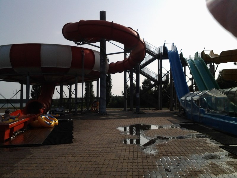 They made us wear helmets to go down the toilet bowl slide. I have no idea why. I think they make us look, really, really cool 🙂