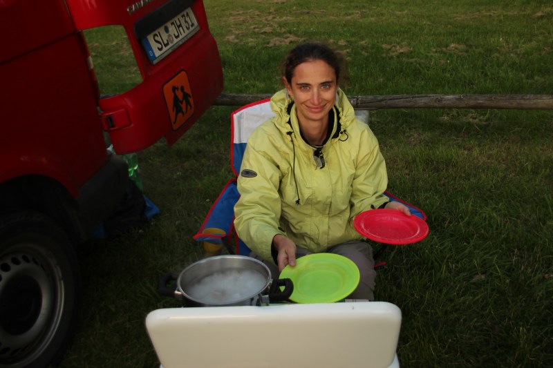 Making supper at the campsite in Denmark