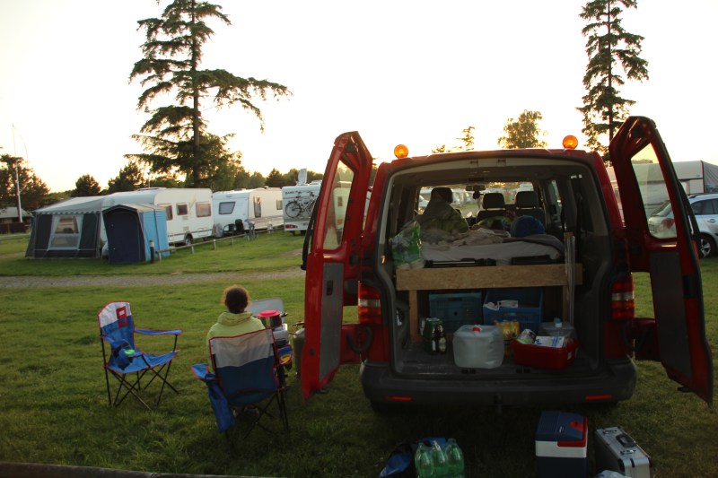 Before we left on our trip, we had to prepare the van. Jörn and his father, who both have extensive experience in construction, spent the day building a bed that had compartments underneath where we could fit our stuff. I busied myself with cleaning things (anyone who knows me knows that I probably shouldn’t be handling anything more deadly than a butter knife!) We spent a very pleasant night at Jörn’s parents’ place (I love being with families!), then headed off to Denmark on July 1.