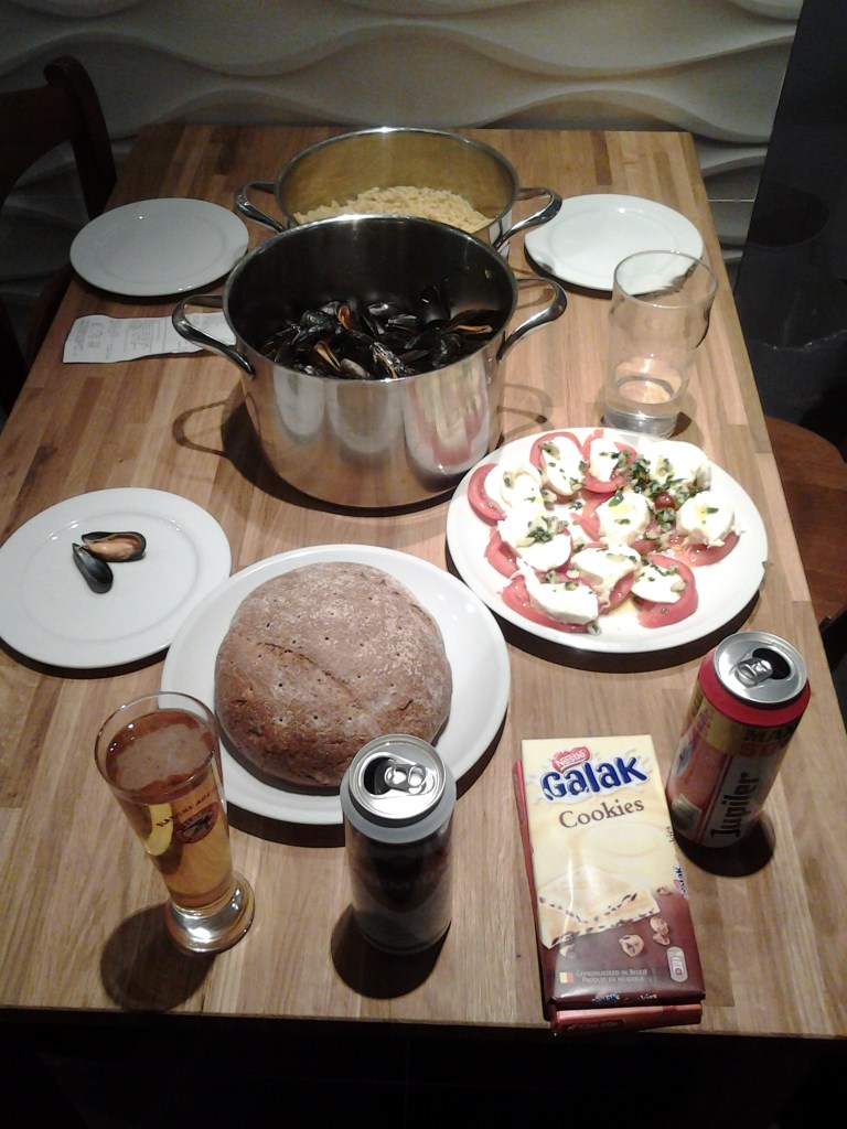 I knew that I wanted to try some mussels in Belgium, but they were way too expensive at restaurants. A group of us from the hostel joined together and bought mussels and other ingredients at the grocery store. It was awesome! One guy did virtually all the cooking (he wanted to!), but I did help chop garlic.