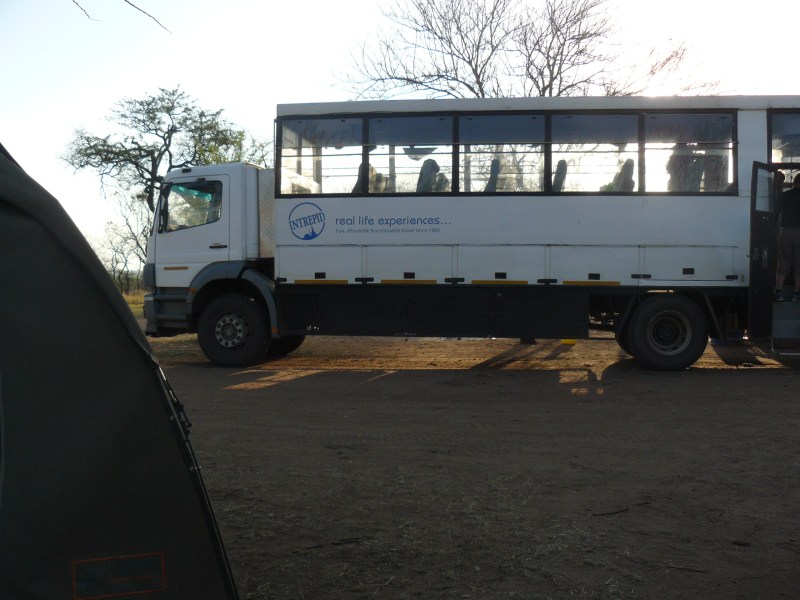For my safari adventure, I had decided to take an Intrepid tour. The company had been recommended to me by backpackers all along my route, and I was not disappointed. I signed up for a “Basix” tour, which meant that we all took turns helping with things like cooking, cleaning and set-up. The food was incredibly good, healthy and plentiful. I never had to worry about food poisoning, which I truly appreciated! Our 19-member group ranged in age from 20-something to 60-something, and I enjoyed getting to know everybody. I shared a tent with a fellow solo traveller.