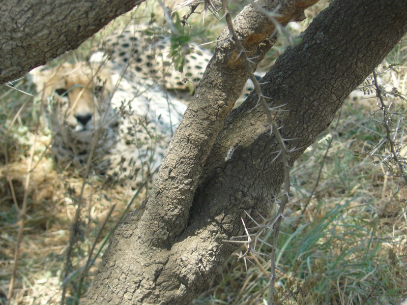 The highlight of the game drives for me by far was when our truck happened upon two cheetahs chilling under a tree. By some stroke of unbelievable luck, the cheetahs chose that moment to notice a gazelle nearby and decide to give chase. Watching a cheetah run after its prey is truly spectacular. It was the Discovery Channel right before our very eyes! The gazelle changed direction to try to avoid the cheetah, but the cheetah took it down quite fast. We were all cheering like we were watching a hockey game!