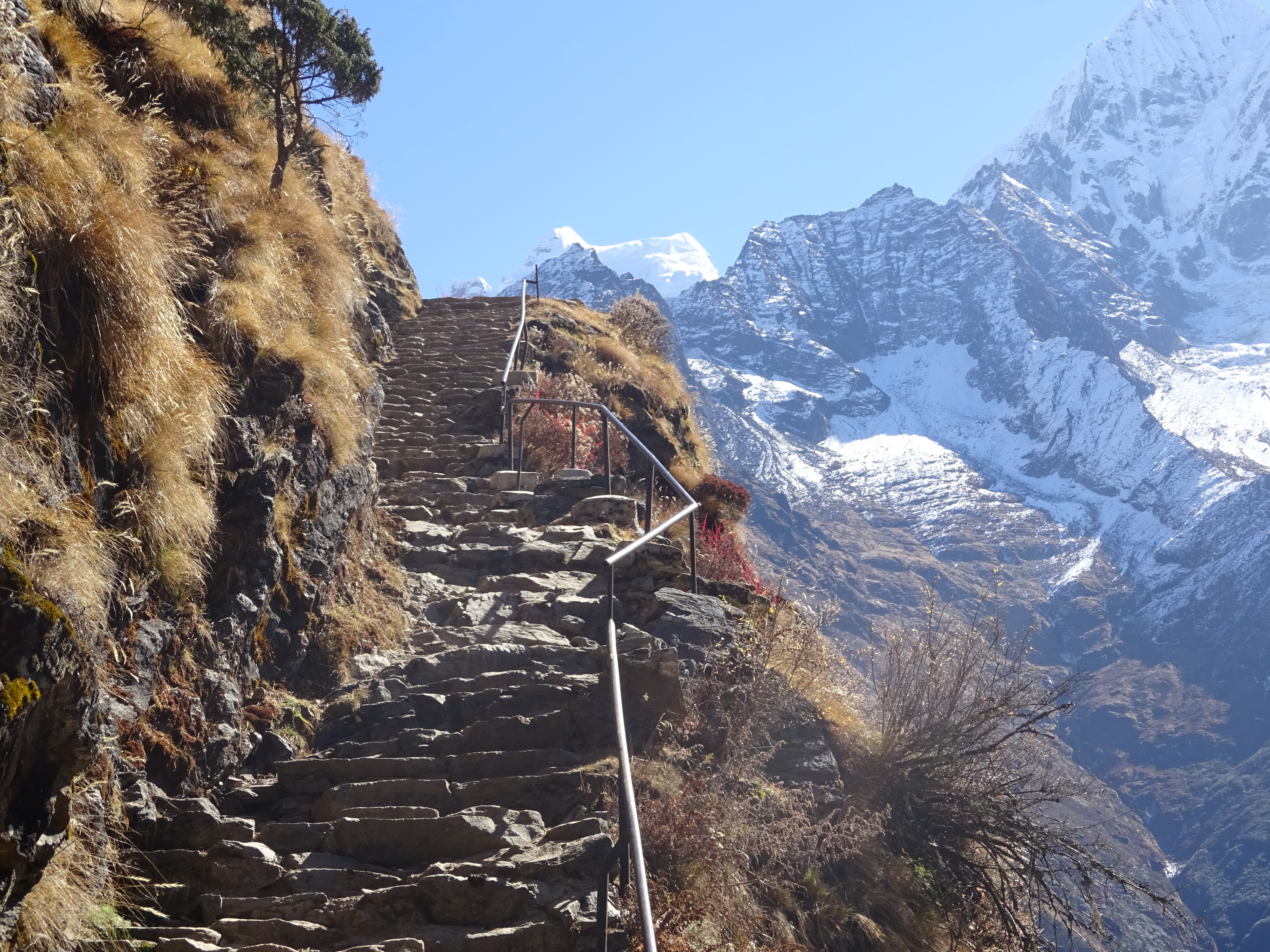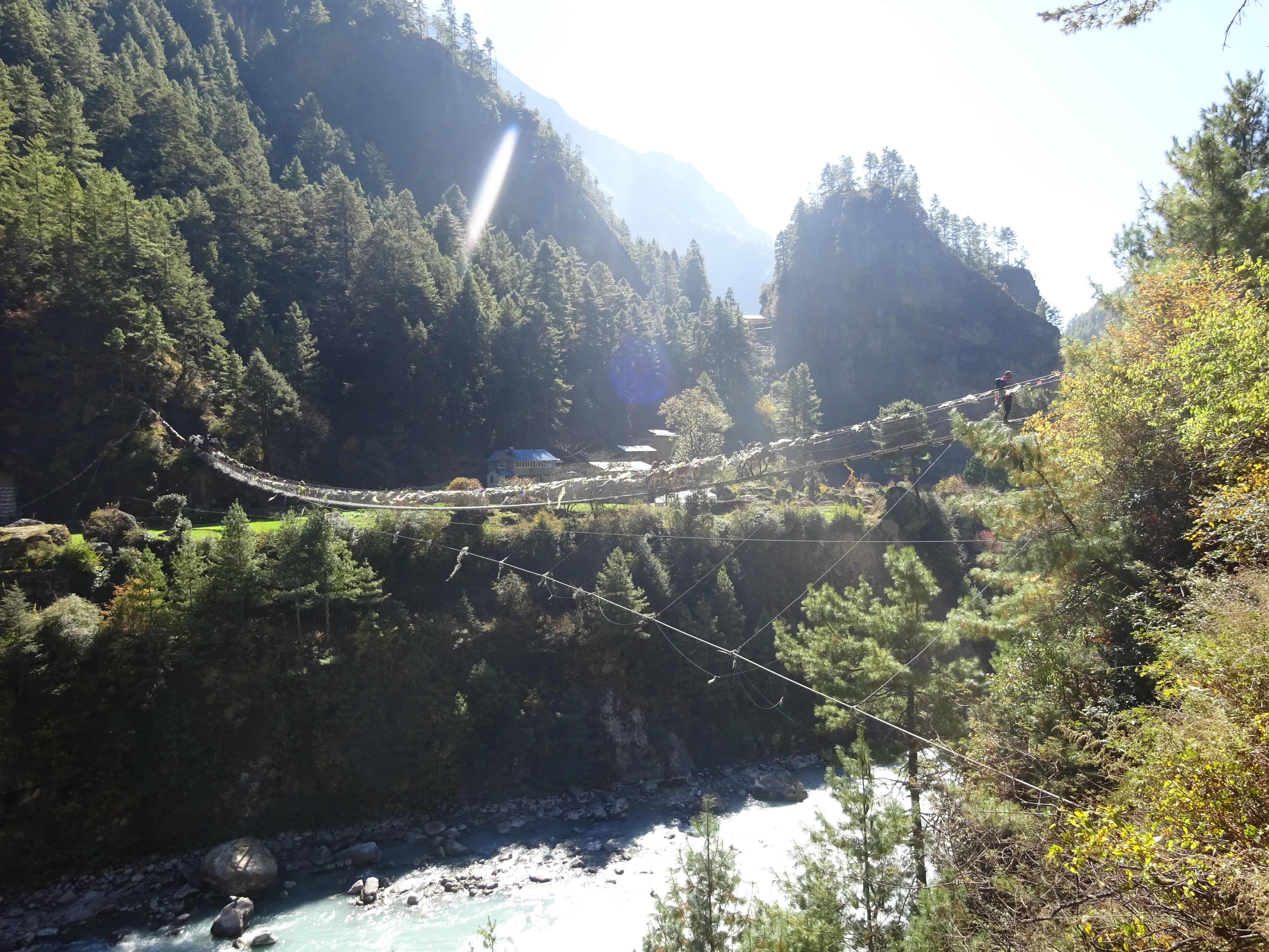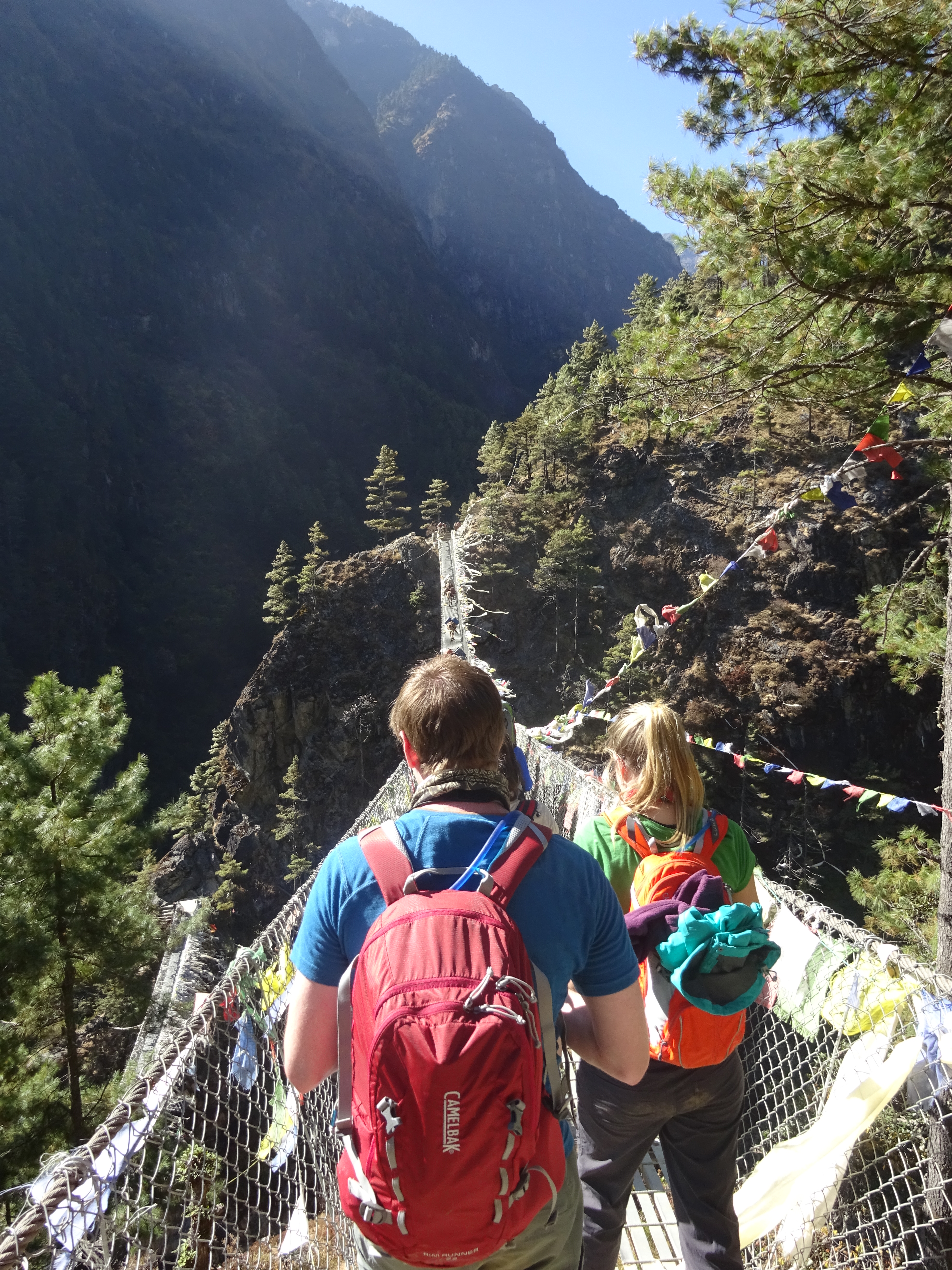 I crashed at about 7:00 p.m. that night, and slept like a baby for about 12 hours. Finally some proper z’s! I felt like a new person the next morning. We trekked from Phakding to Namche Bazaar, which involved lovely waterfalls, endless sets of stairs and one particularly terrifying suspension bridge.