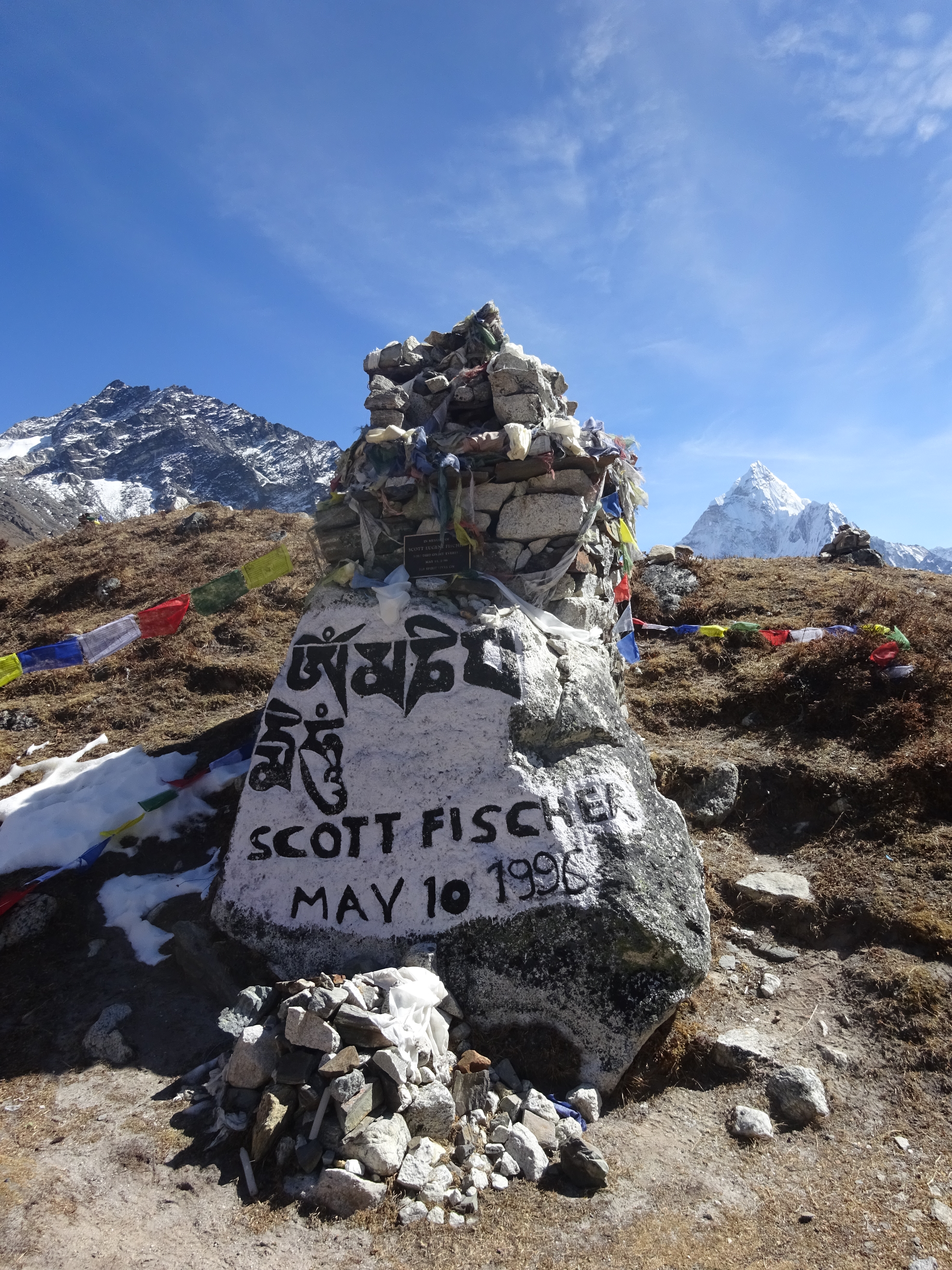 I went to bed ridiculously early that night, and, despite everything, managed to sleep well. I woke up the next morning starving, which was fantastic! I had done it! I’d acclimatized! I’m acclimatizable! I wolfed down breakfast like a champ, feeling incredibly relieved and positively giddy. We did an easy acclimatization hike that day to the Lhotse South Face Heroes memorial.