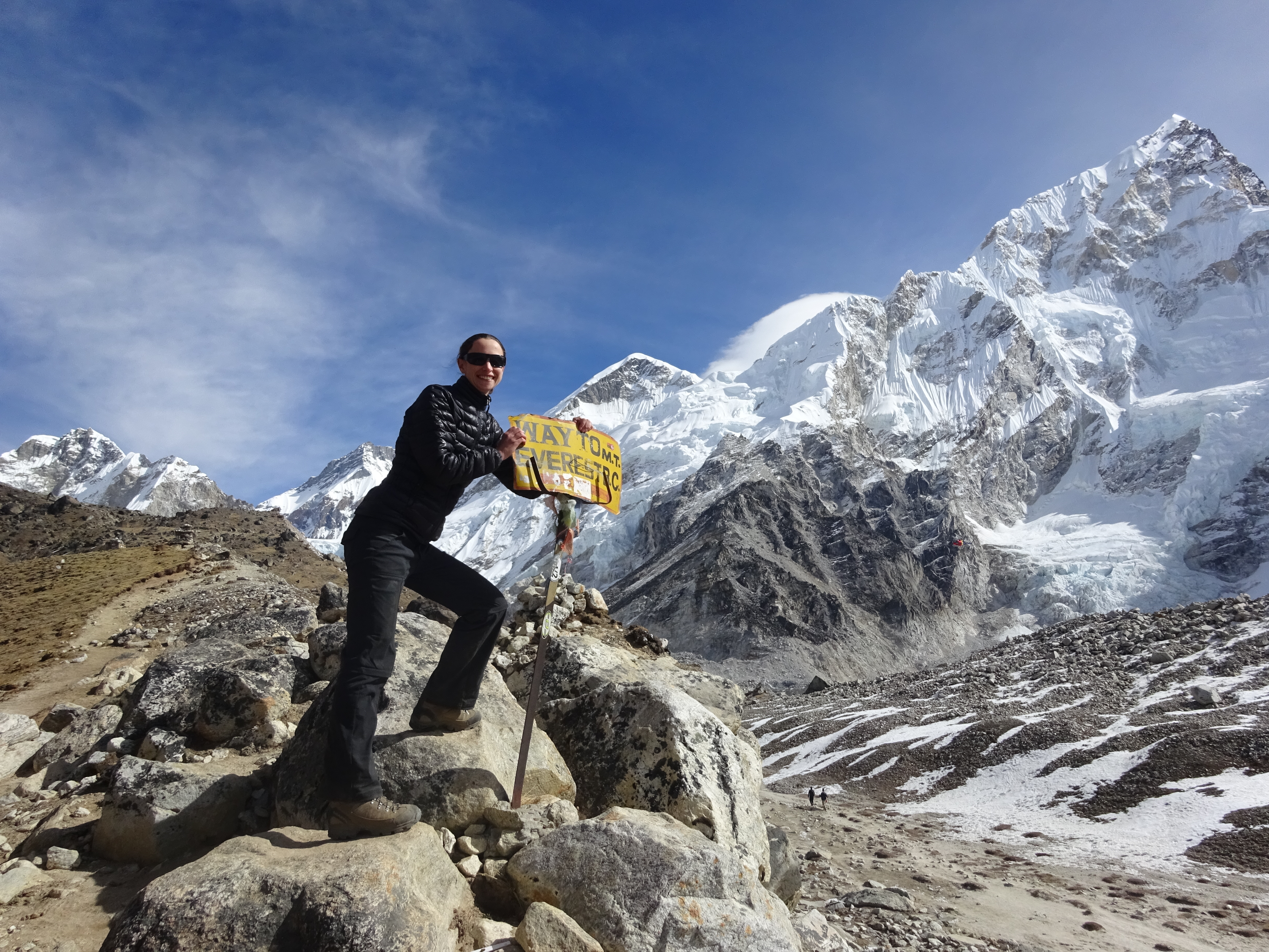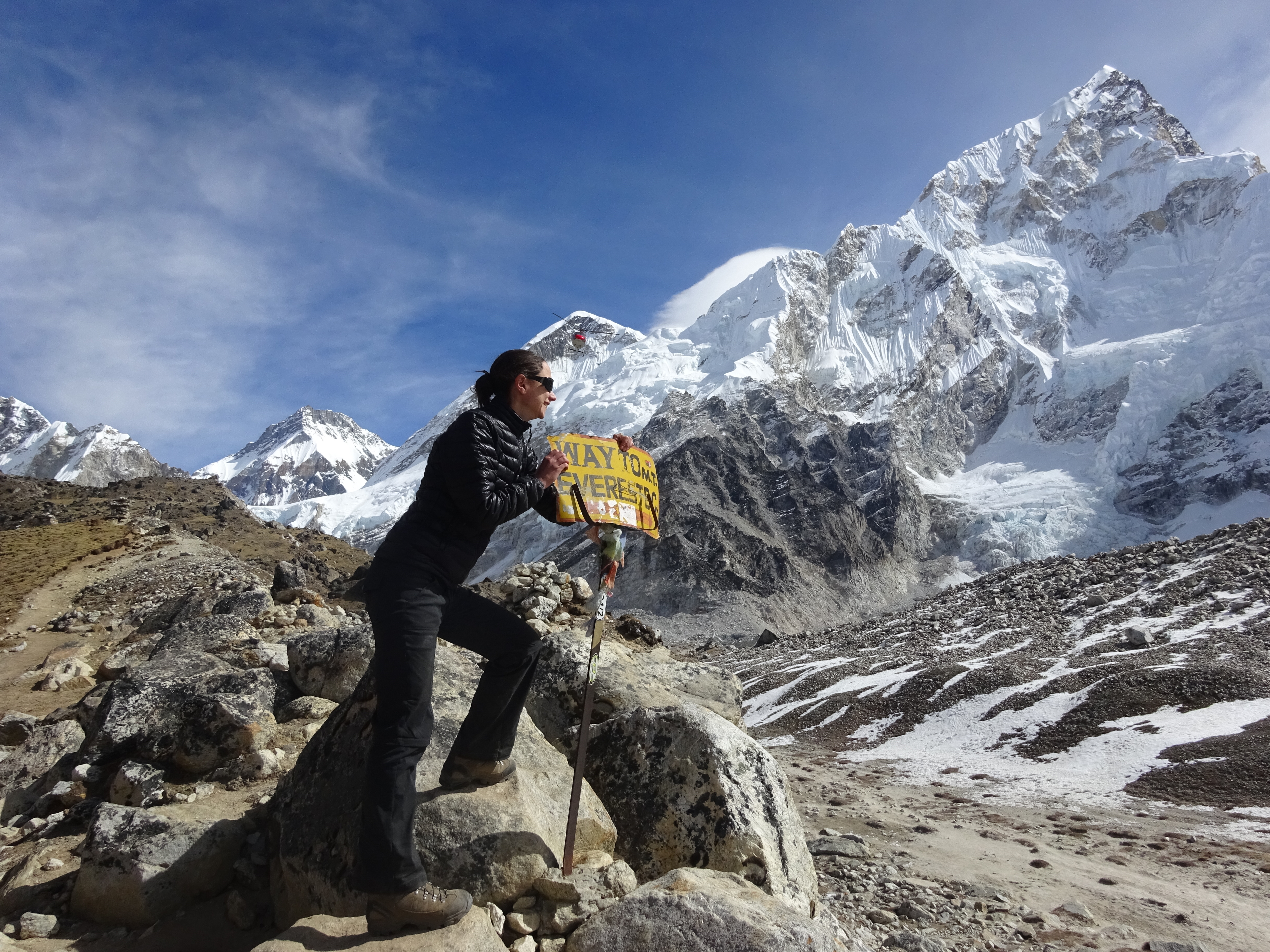 The final three-hour hike to Everest Base camp was tremendously challenging for me. Although my nausea had gone, I found it very hard to breathe whenever the path became steep. This ranged from mildly annoying to downright scary, especially when I had to take two or three gulps of air to catch my breath. I fell behind the group again and felt incredibly weak. The guides kept asking whether I wanted them to take my pack, but I was reluctant at first. I wanted to carry my weight, even if it was only a few kilos. It was the principle, darnit! I had also given my pack to my guide for the final ascent on Kilimanjaro, and I didn’t want to repeat that experience. Eventually, I realized that it was a matter of either handing my pack over or not making it to base camp. It was much easier to hike and breathe without even that tiny bit of extra weight.
