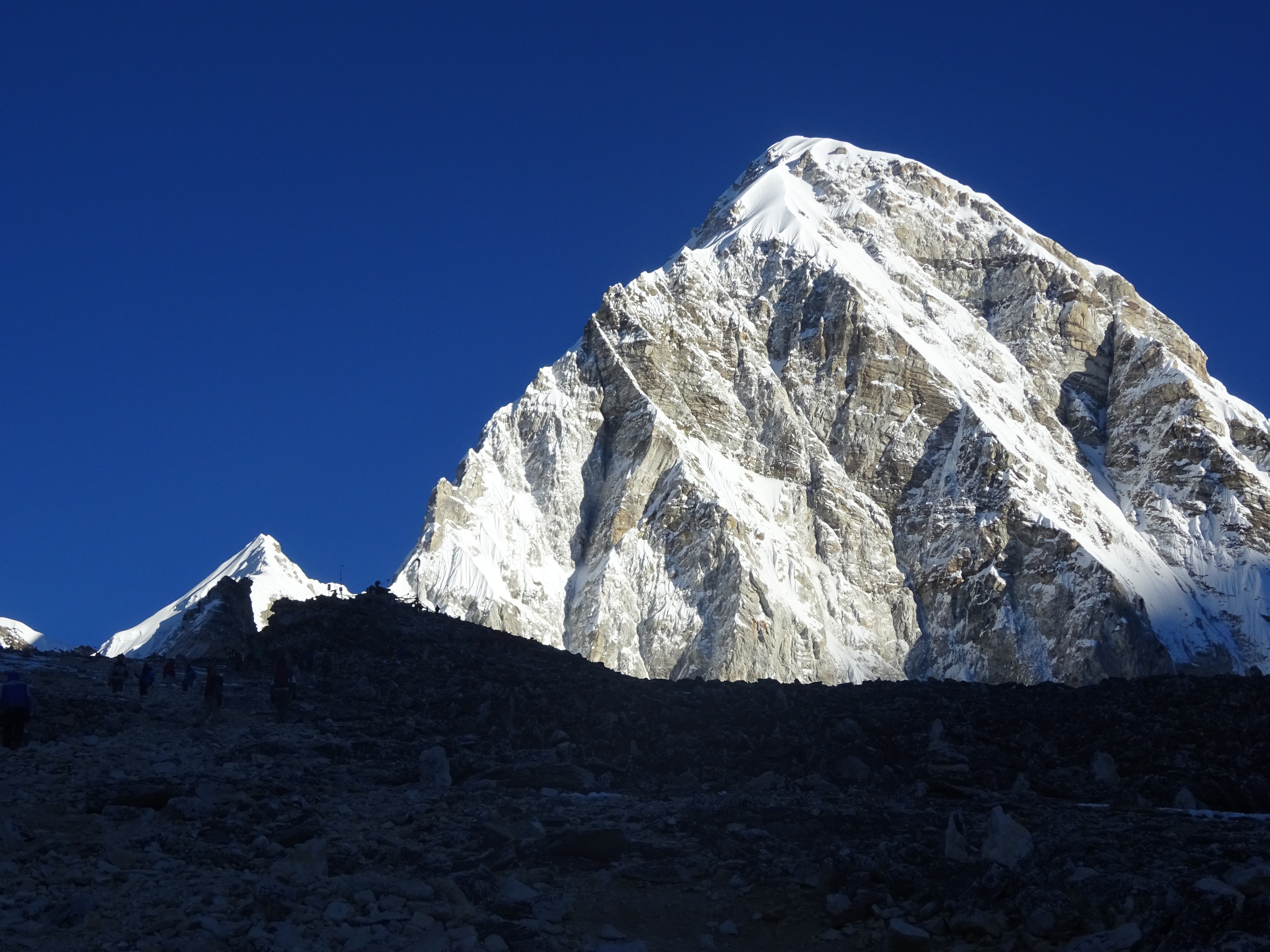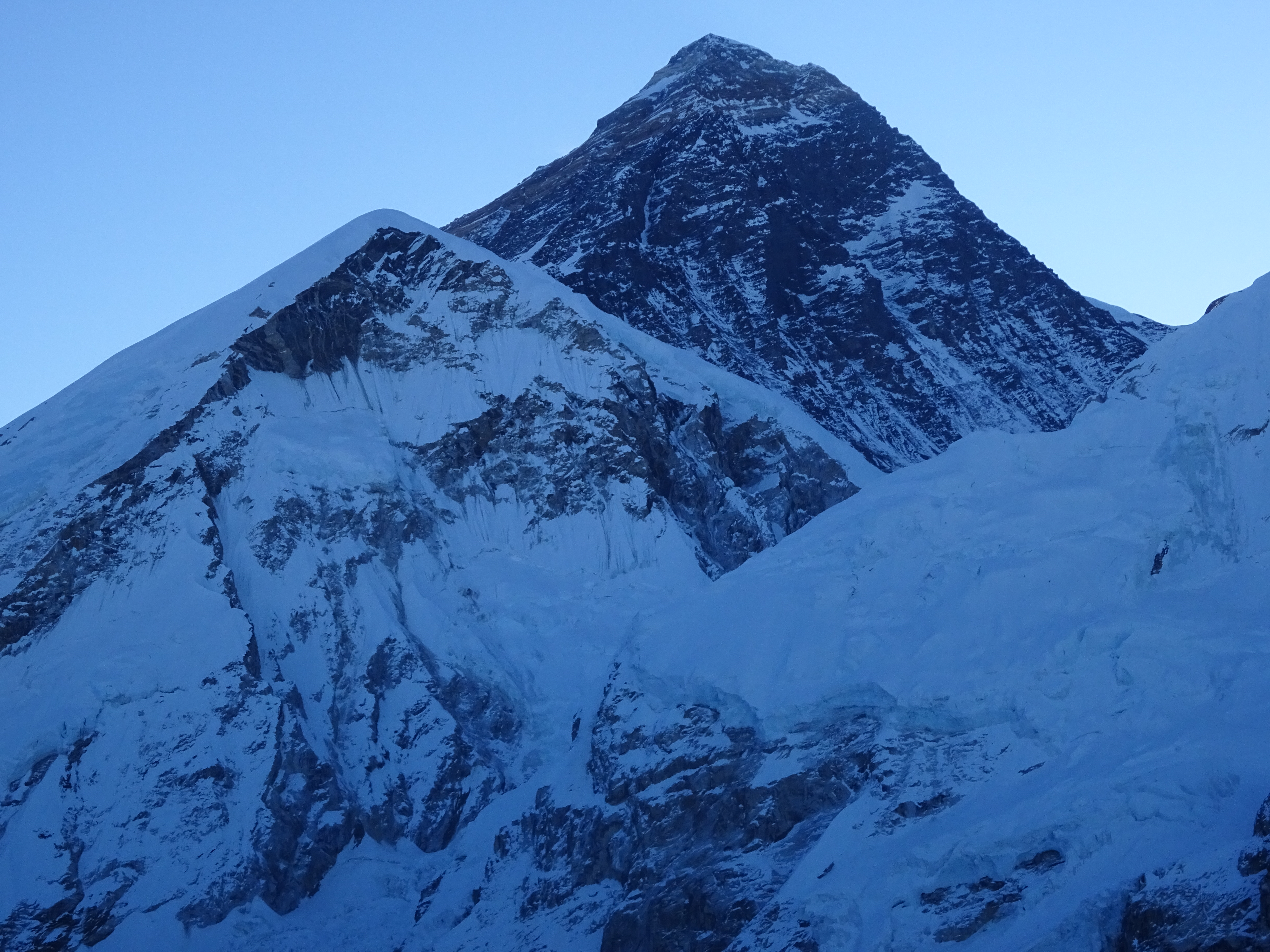 We were awakened at about 4:00 a.m. that morning by our guides pounding on our doors. It was time for one last two-hour climb to the peak of Kala Patthar, just above Gorak Shep, for “a fantastic panoramic view of the Himalayas” (as advertised in the brochure). It was at least – 15°C outside, but thankfully there was no wind. We zig zagged our way slowly but surely up the steep path. I’m sure we were all wondering what on earth we had been thinking to put ourselves through this. I was feeling stronger than the day before, and I managed to carry my own pack. But it was still incredibly difficult and painful. My hands were frozen inside my gloves, and there was no way to move fast enough to warm up my toes.