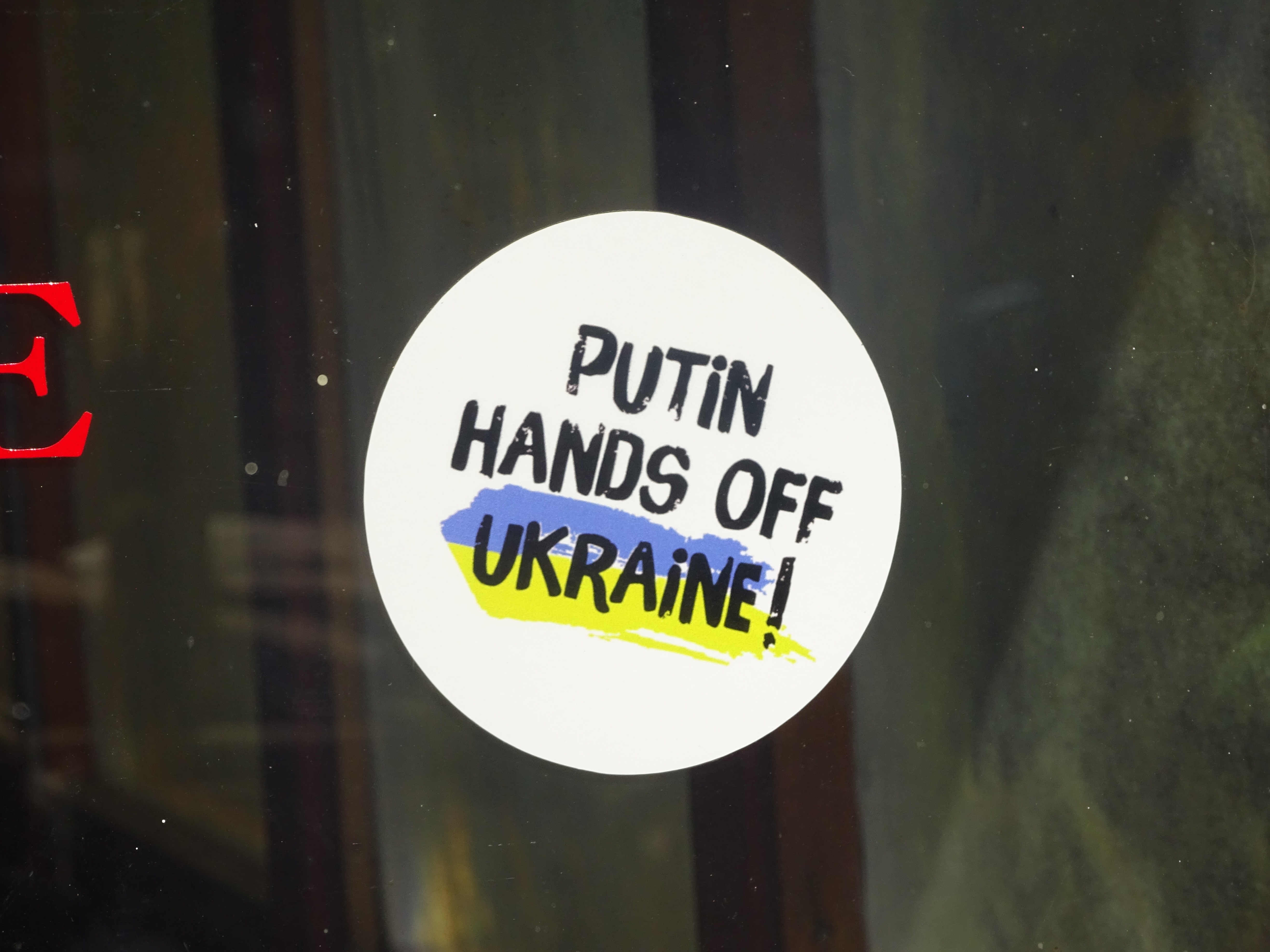 We trekked for about four hours back to Lukla the next day. When we stopped for some tea, I noticed a window with a bunch of stickers, and one in particular caught my eye.