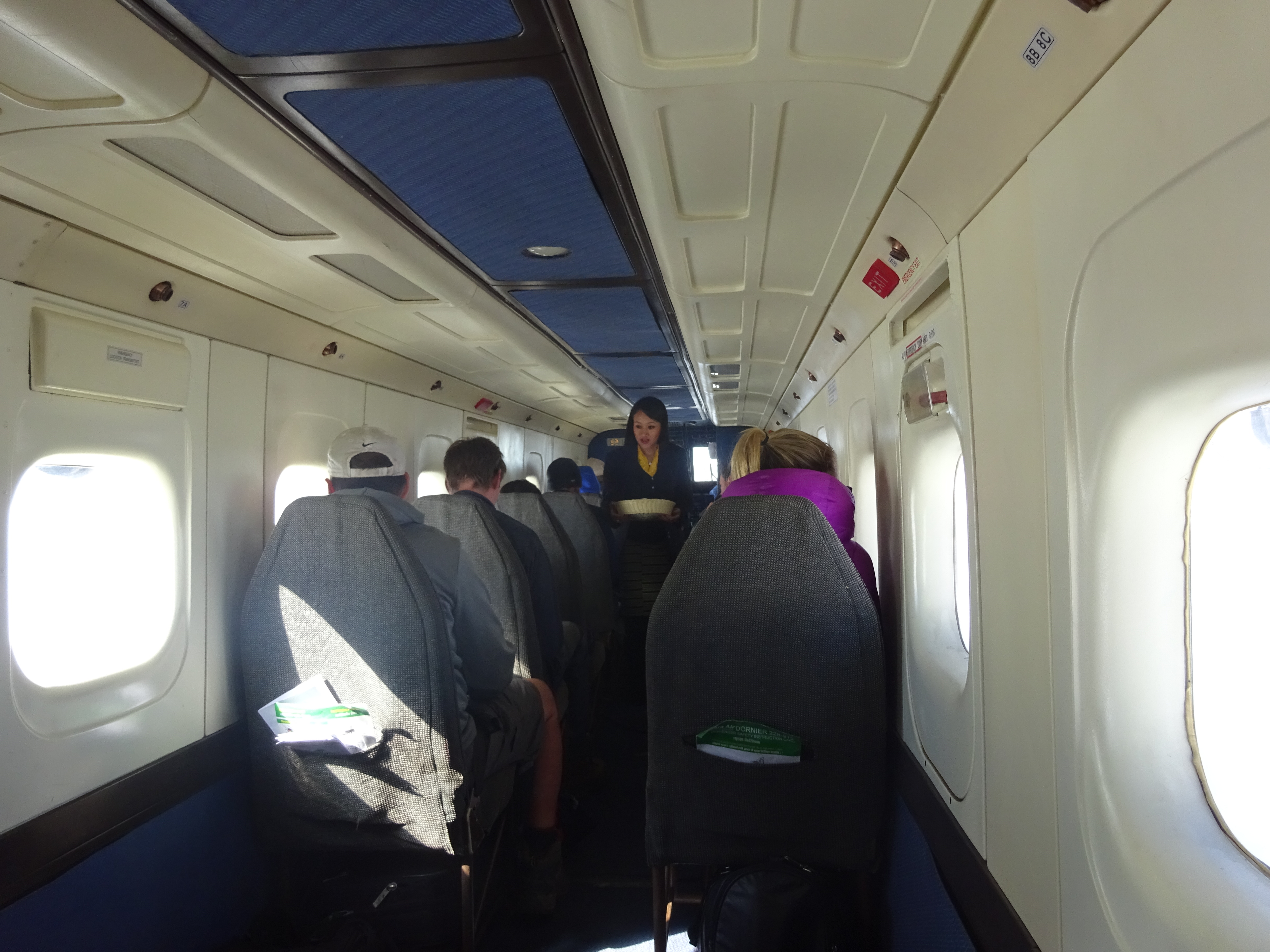 Our airplane was a sixteen-seater, and even came with a flight attendant! Somewhat disturbingly, right before we took off, she passed around a form that we could fill out if we noted any safety violations. Um, what??? What this supposed to be some sort of PR thing? Because it wasn’t particularly reassuring! What the heck do I know?? The wings look intact and the pilots seem to be paying attention. 10/10 if we don’t crash land???