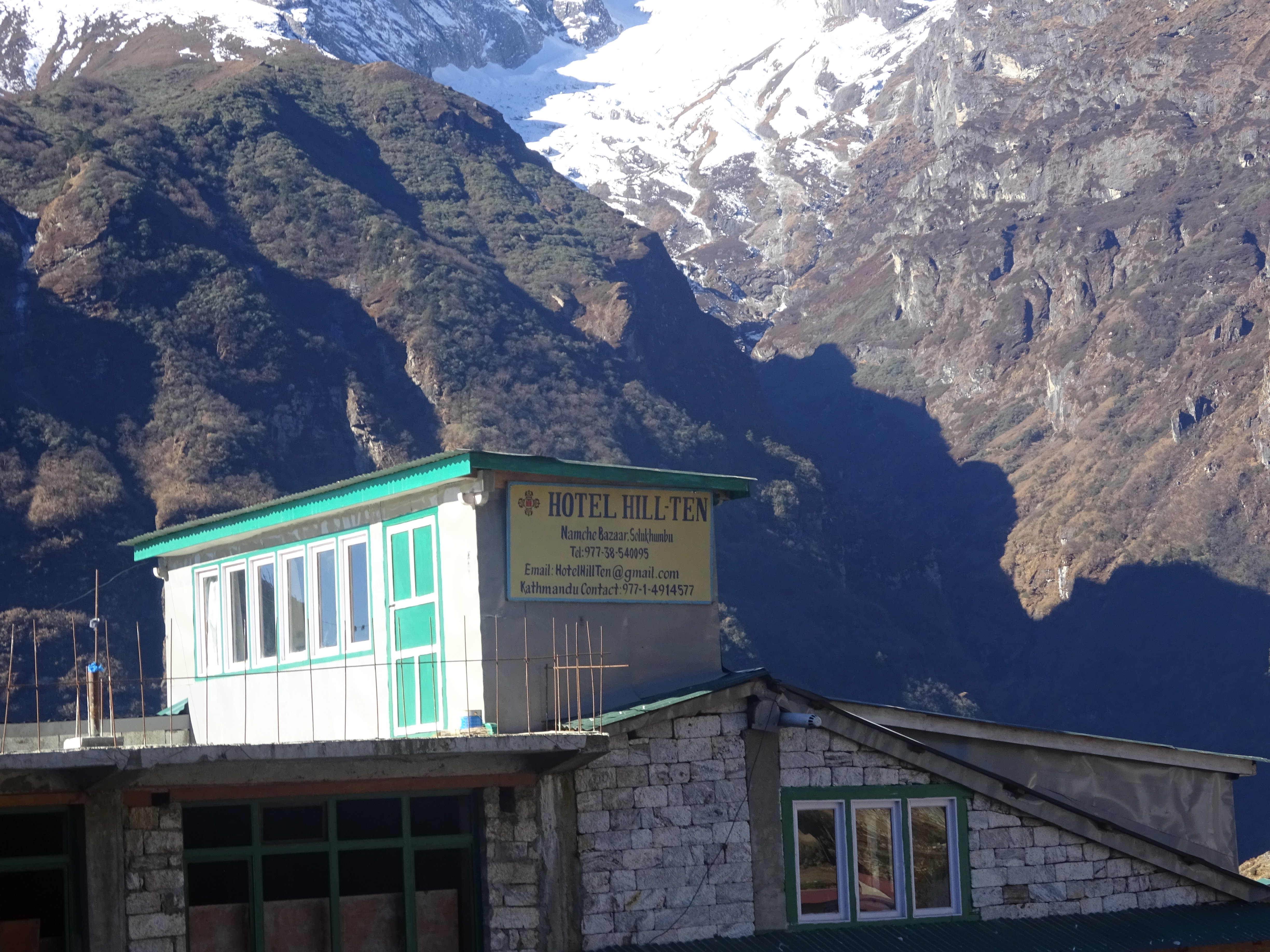 Namche Bazaar is a beautiful town set right into the mountain. It is bustling with trekking shops, bakeries, pubs and a single, precious ATM. We stayed at an excellent teahouse with comfy beds and nice toilets. It was also our last place to take a good hot shower before heading up to base camp.