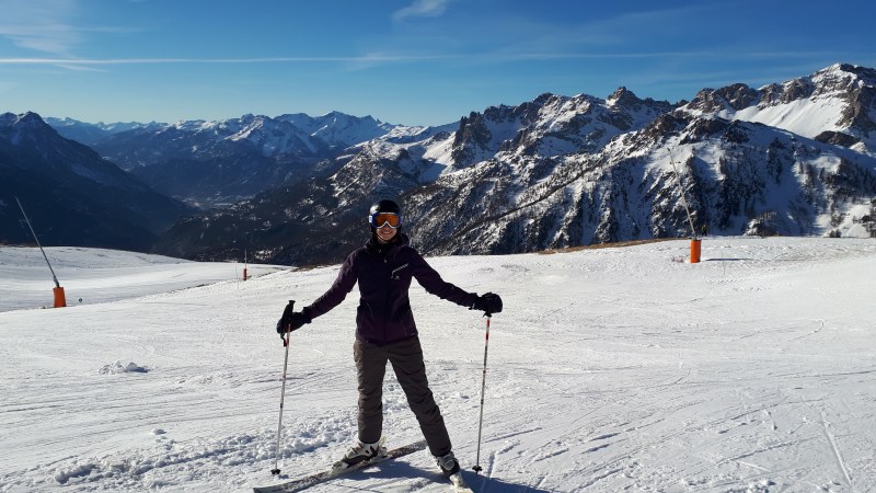 The cable car dropped us off at the Serre Chevalier resort, a gigantic ski area with 250 km of runs. As a bonus, since we were at the resort in the middle of week and not during school winter holidays, we hardly waited in any lines.