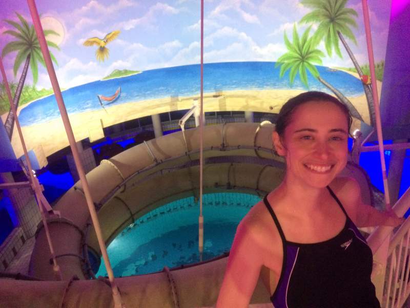 To get to the water park, we had to walk through Duinrell at night. Since the outdoor portion of the park was not in operation, it had an “abandoned” feel to it. It was like being in a Goosebumps novel. When we finally reached the indoor pool area, it was beyond my wildest dreams. Most of the slides looped around the outside of the building, so I had no idea what to expect each time I launched myself into a slide. In one slide, I shot straight down. I didn’t see it coming! Another slide was pitch black, and another one was completely psychedelic. The park also had a lazy river, a loop slide and a “toilet bowl” style slide that unceremoniously dropped me into the water upside down. I was in heaven!