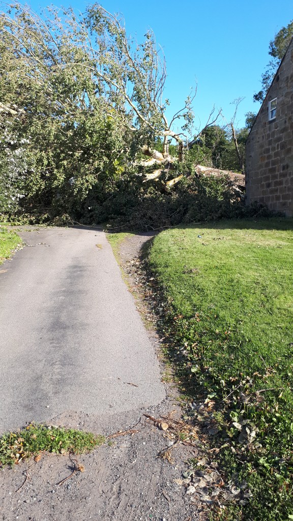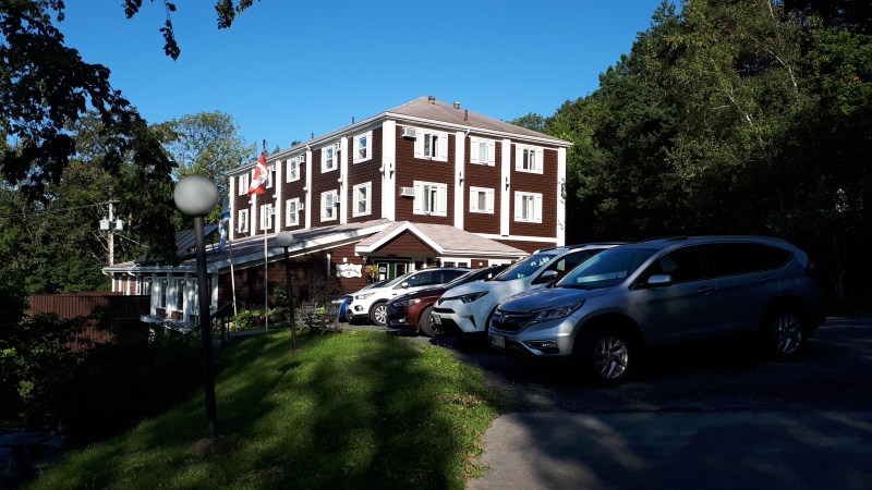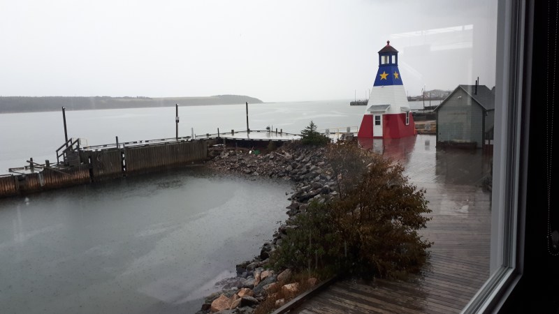A hurricane had just hit Nova Scotia a few days earlier, so we started seeing the damage (mostly fallen trees) as we approached Pictou. When we arrived in the town, half the streets were dark as a result of power outages. Fortunately, our hotel got electricity back about an hour before we arrived.