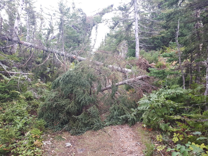 The trail was mostly clear, but we occasionally needed to scoot over or under trees that had fallen in the hurricane a few days before.