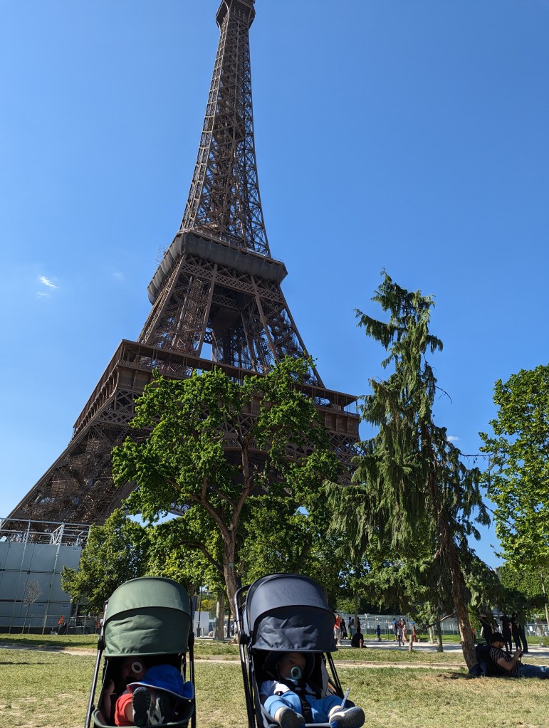 The following day, we ran into a typical complication resulting from a two-nap schedule: the day disappeared on us. The boys needed at least one crib nap, after such long days of travel, and they certainly snoozed like world champions. By the time they woke up from their morning nap, it was already lunch time. We got them ready as quickly as possible and joined Tony and his family for some ice cream on the Champs-Élysées.
