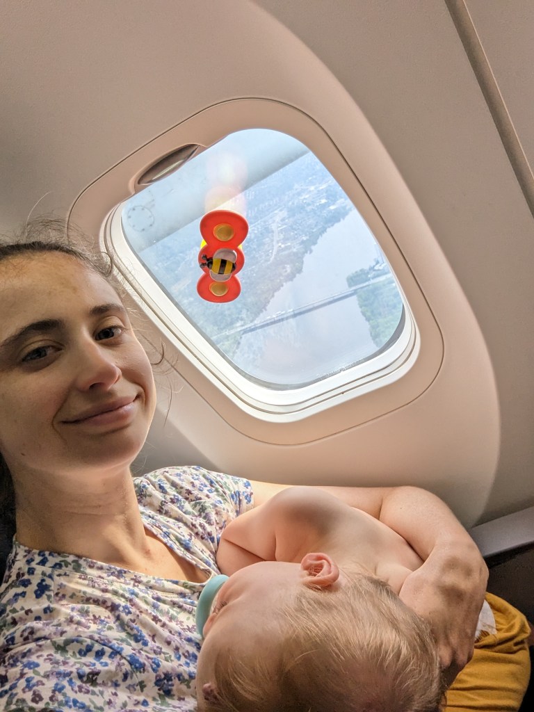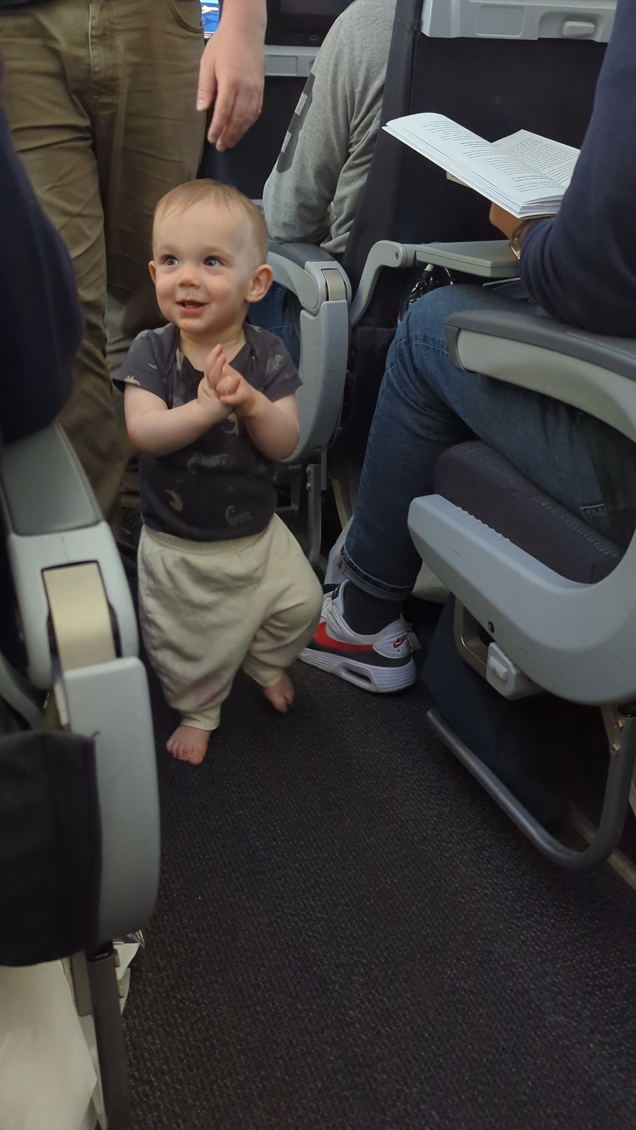 We raced through customs in Montreal and managed to catch our rebooked flight to Ottawa. Ian had gone through almost all the clothes in my carry on bag at that point, having gotten milk and food all over everything. He fussed a bit when we first got on the plane, but the rumble and roar of the takeoff roll lulled him right to sleep.